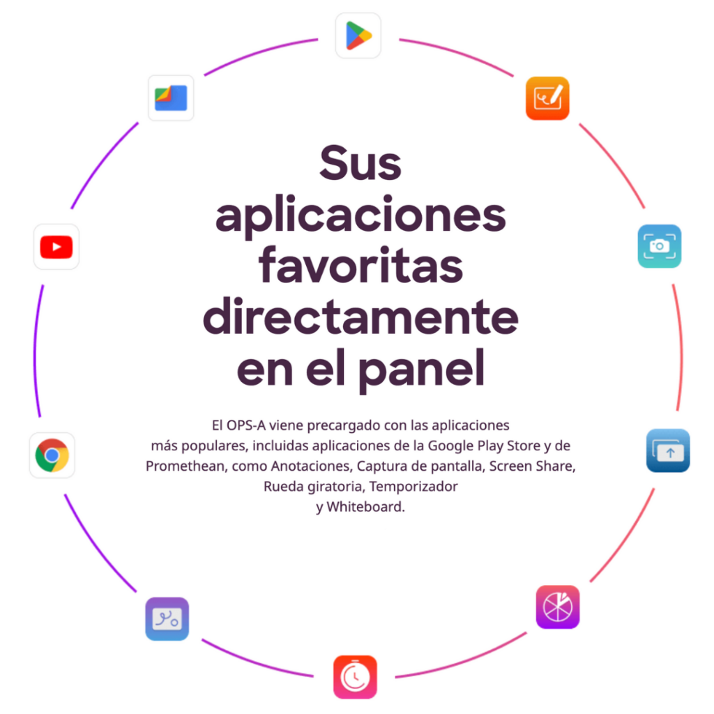 Por ejemplo, la posibilidad de actualizar dicho sistema operativo cada vez que éste avance o evolucione a nuevas versiones de Android. Al no estar embebido dentro del panel, con el OPS el sistema puede actualizarse cada vez que sea necesario sin ninguna dificultad. Esta característica ha sido pensada y diseñada para que estos paneles nunca queden obsoletos y puedan avanzar con los tiempos y la necesidades de cada colegio, lo que significa una ventaja muy a tener en cuenta con respecto a otros paneles existentes en el mercado.
