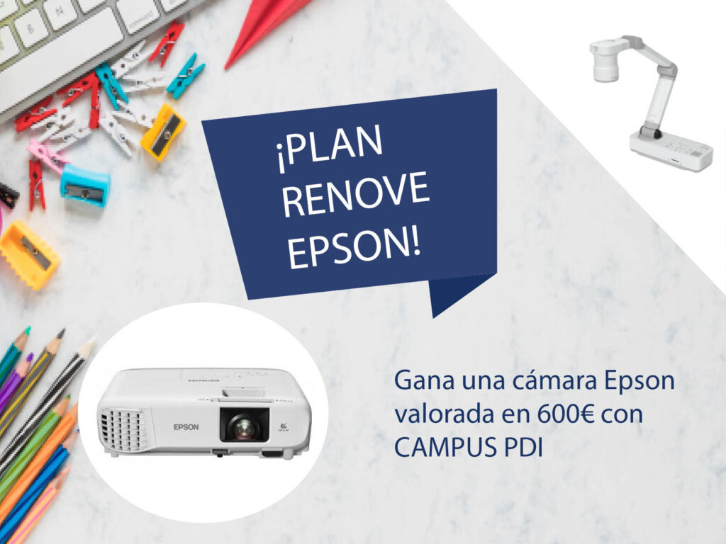 Como incentivo a este nuevo Plan Renove, Campus PDI sorteará una cámara de documentos EPSON ELP-DC21 (valorada en 600 euros) entre todos los centros que compren cualquier modelo de proyector EPSON. Incluido el excelente proyector de techo EPSON EB-X39, una de las soluciones preferidas por colegios e institutos.