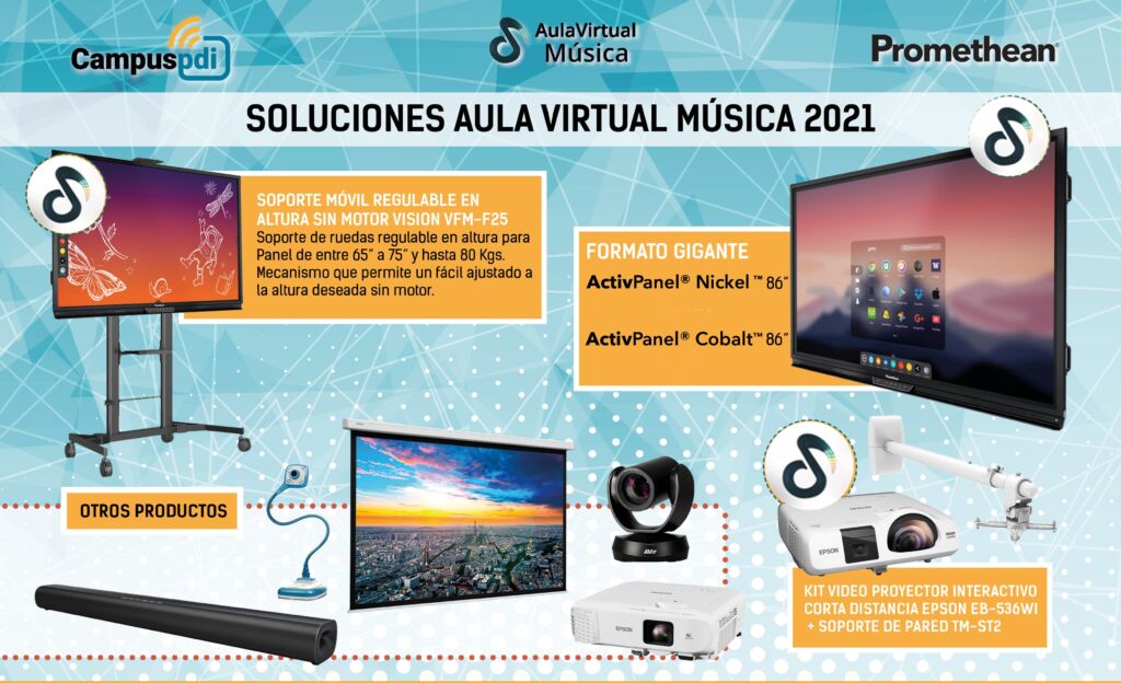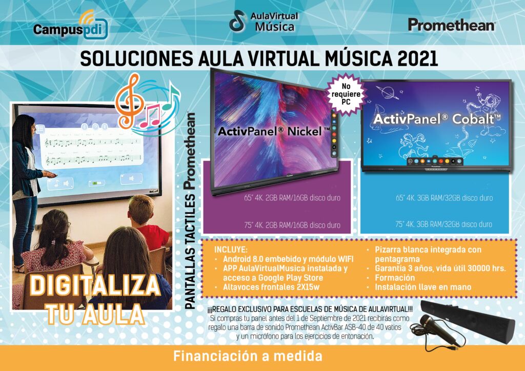 Este año tenemos Pantallas de 86” (para espacios más grandes) de Promethean, con software recién actualizado y herramientas que permiten a los profesores nuevas funcionalidades al impartir sus clases de música.